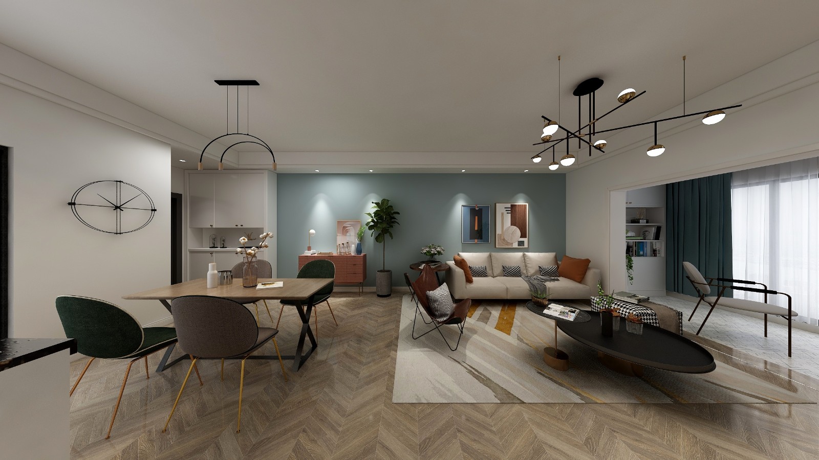 客厅整体设计现约现代,有点混搭风的感觉,存在一种艺术美