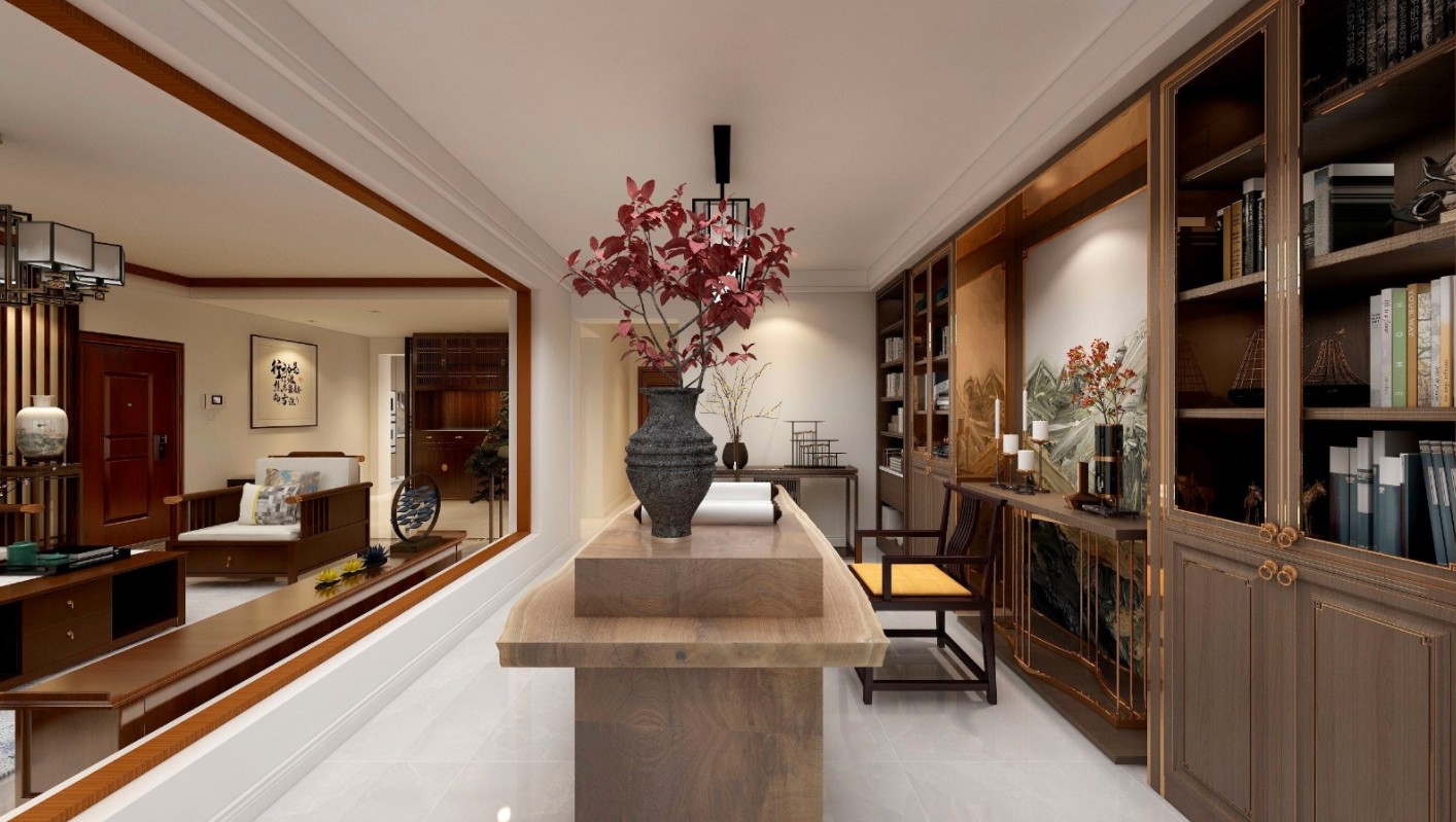 高端高品质的胡桃色,融入到新中式的手法中,显得更大气有格调