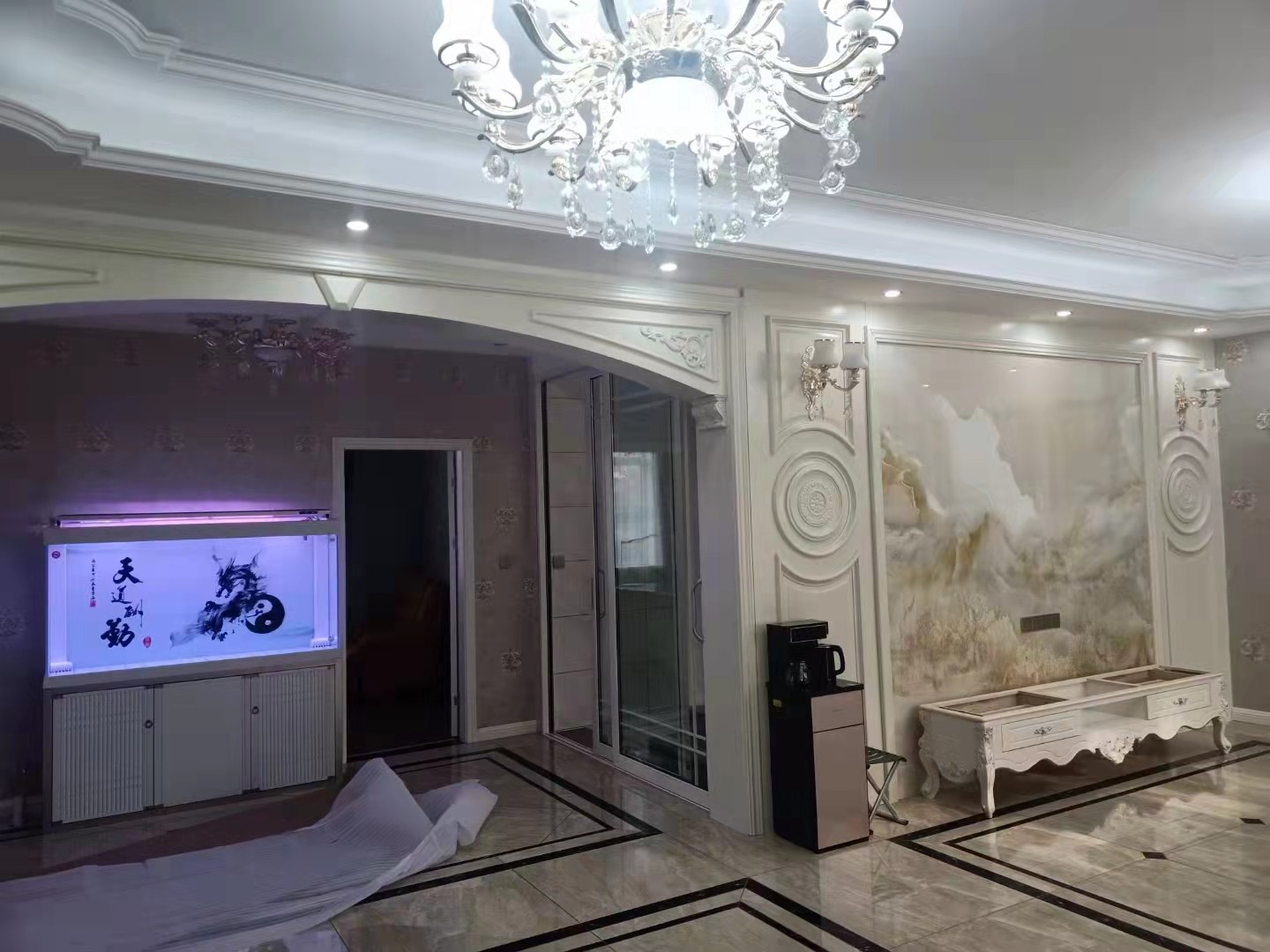 一楼客厅,欧式装修风格,石材电视墙+石材玄关背景