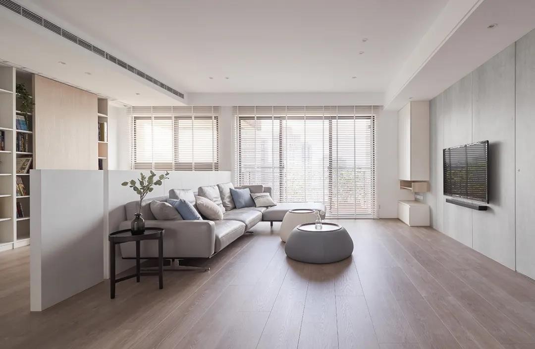 四室两厅三卫的户型。整体以极简风格为主,全屋浅色调、没多余装饰、无主灯设计,完工反而更耐看