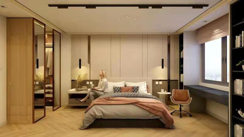通顶式的房门加上雅士白的背景墙,融入到无主灯设计的理念中,让整个空间更大气上档次