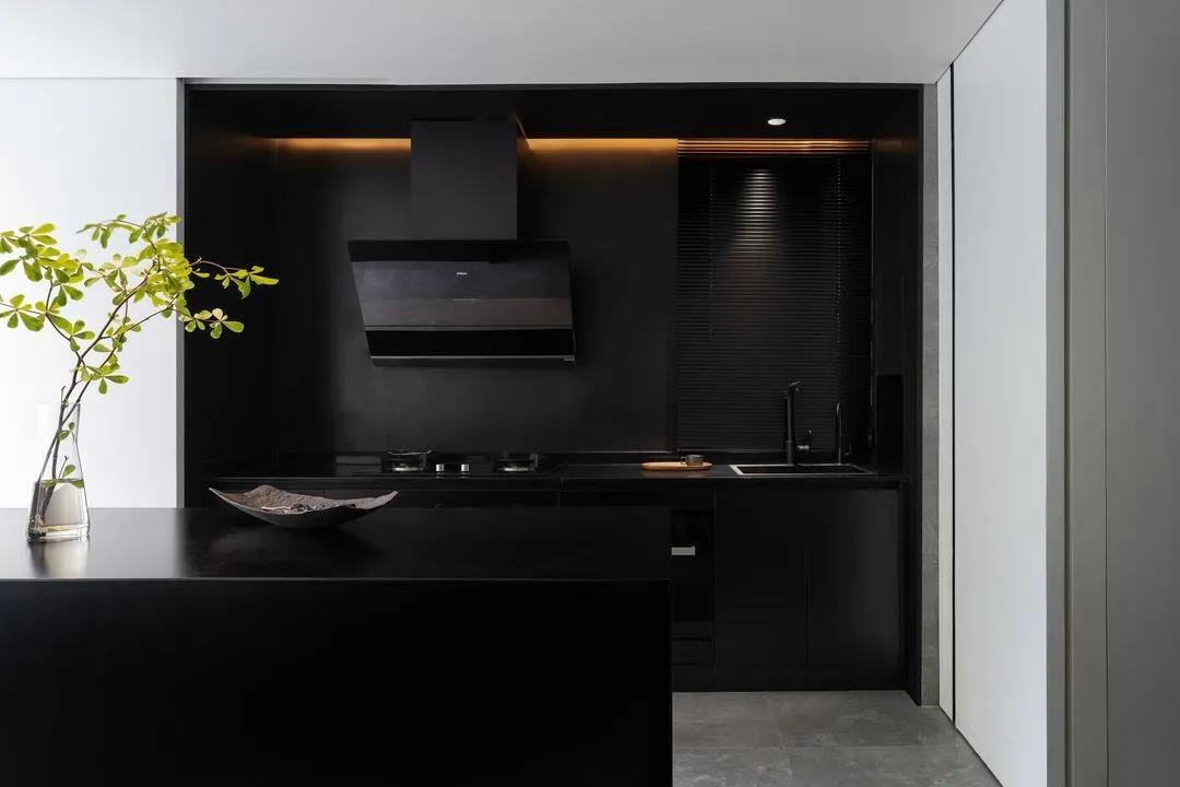 厨房空间厨具功能设施齐全,满足男业主的日常需求,明朗干净的线条与钢板硬朗的材质交叠出冷静的***感。左侧的隐形门里面,是嵌入的冰箱与干衣机,不使用时可用隐形门遮挡,避免大件家电外露的突兀感。