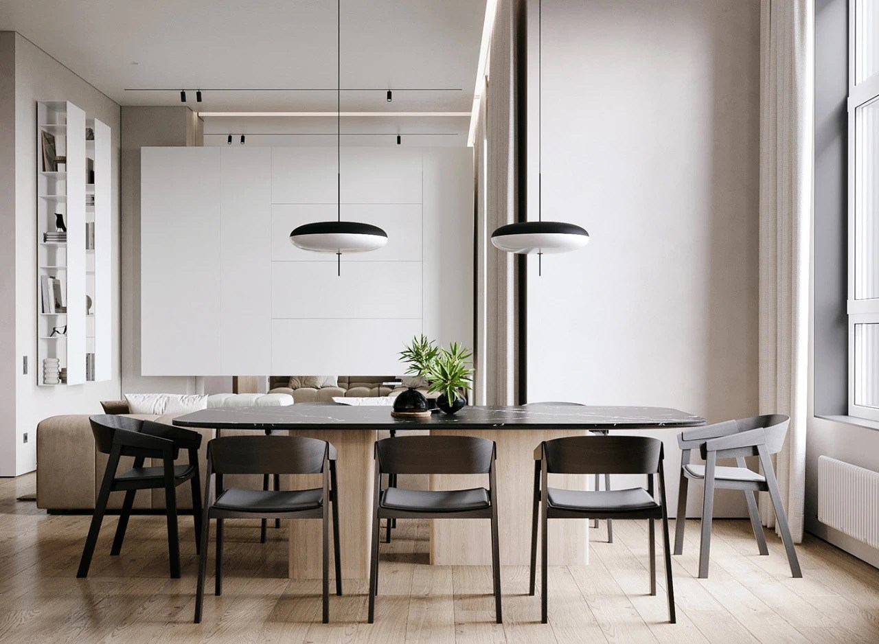 客厅以以现代主义的高度理性,调和出一种大气优雅的空间氛围,花艺的加入增添了自然生活的气息,生活方式如同一层层记忆在空间中渐次打开。