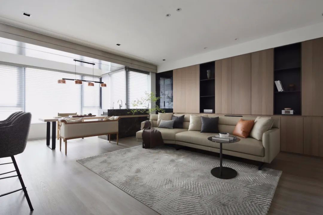 西厨和客厅结合,阳台设置茶台,业主是热爱交流沟通的。