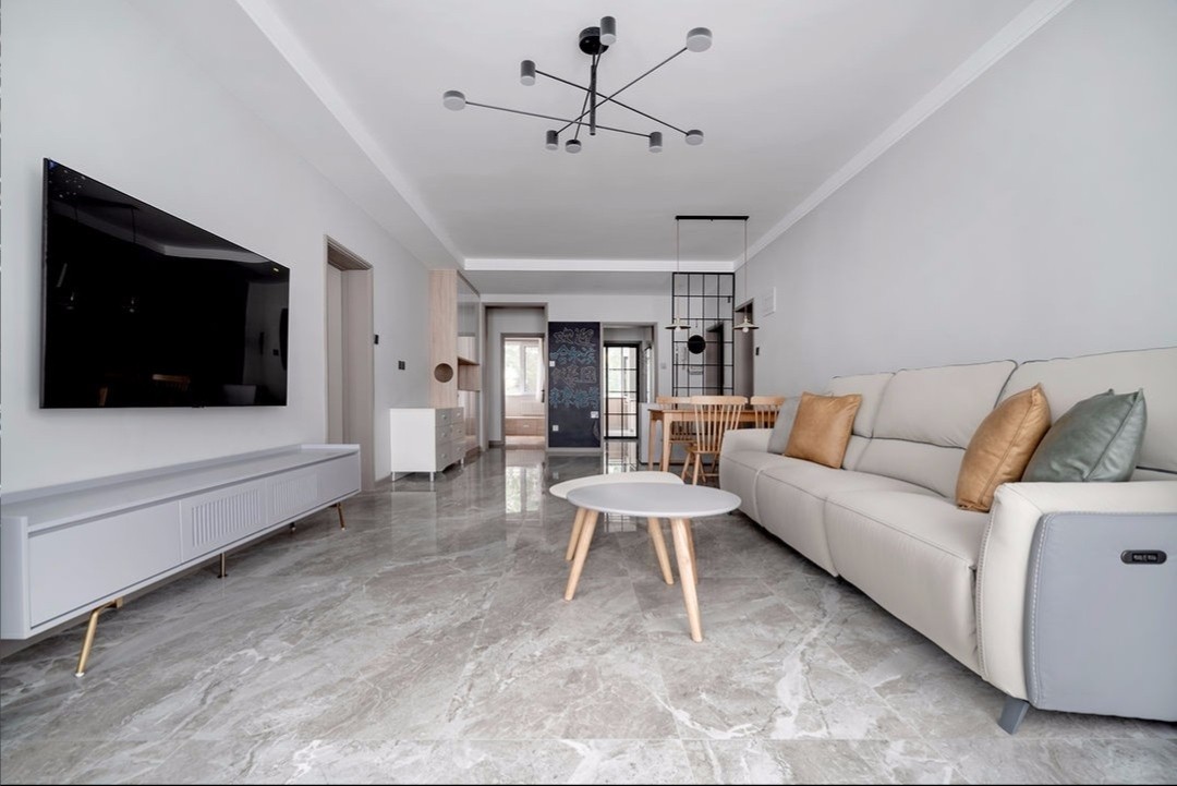 大面积使用浅灰色元素,简约的墙面,淡雅沉静的设计,彰显整个空间的品质,灯光与窗口照进的阳光交相辉映,生活在光芒中显得炽热、温情。