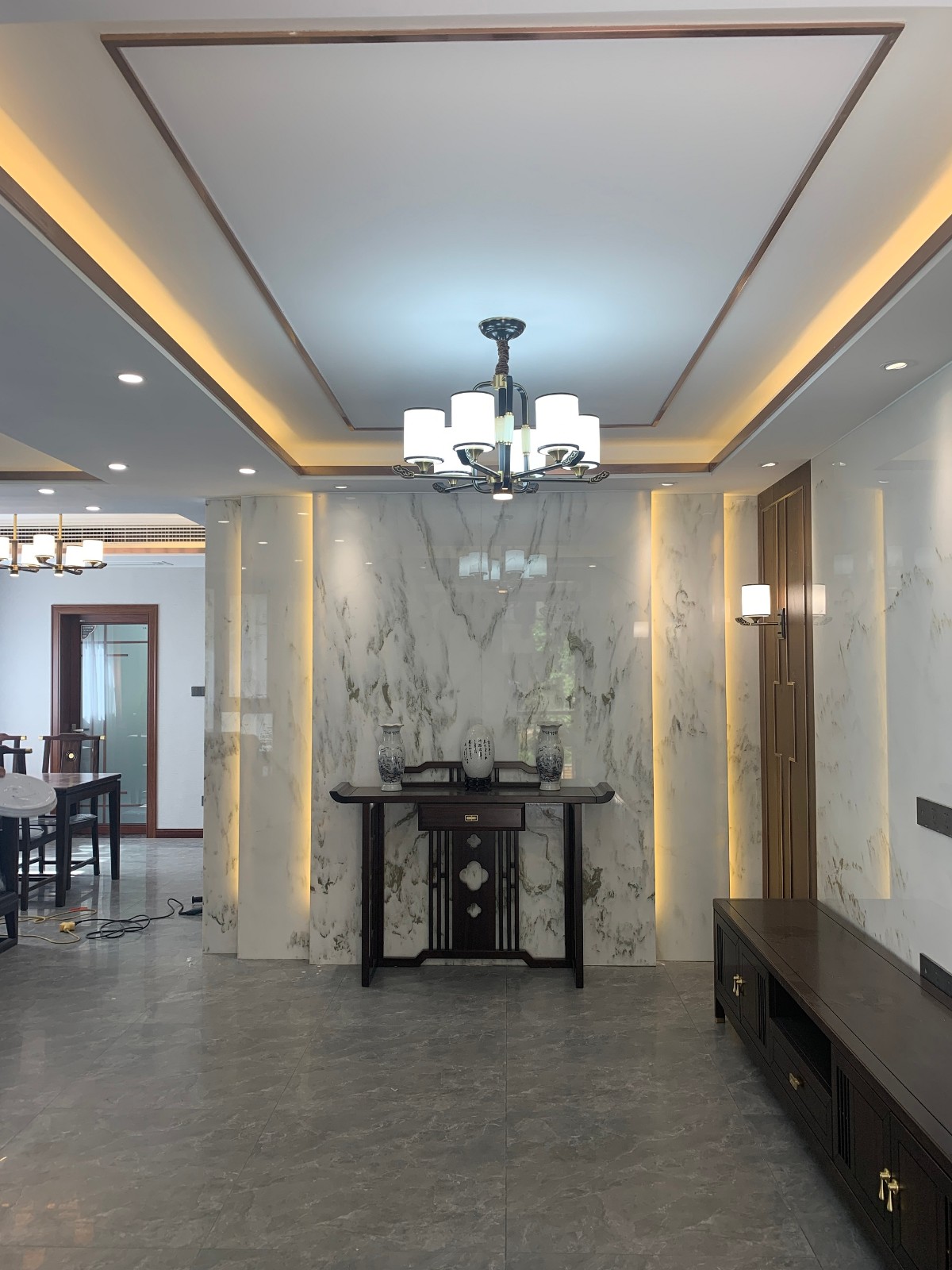 一楼入户玄关,石材灯光造型