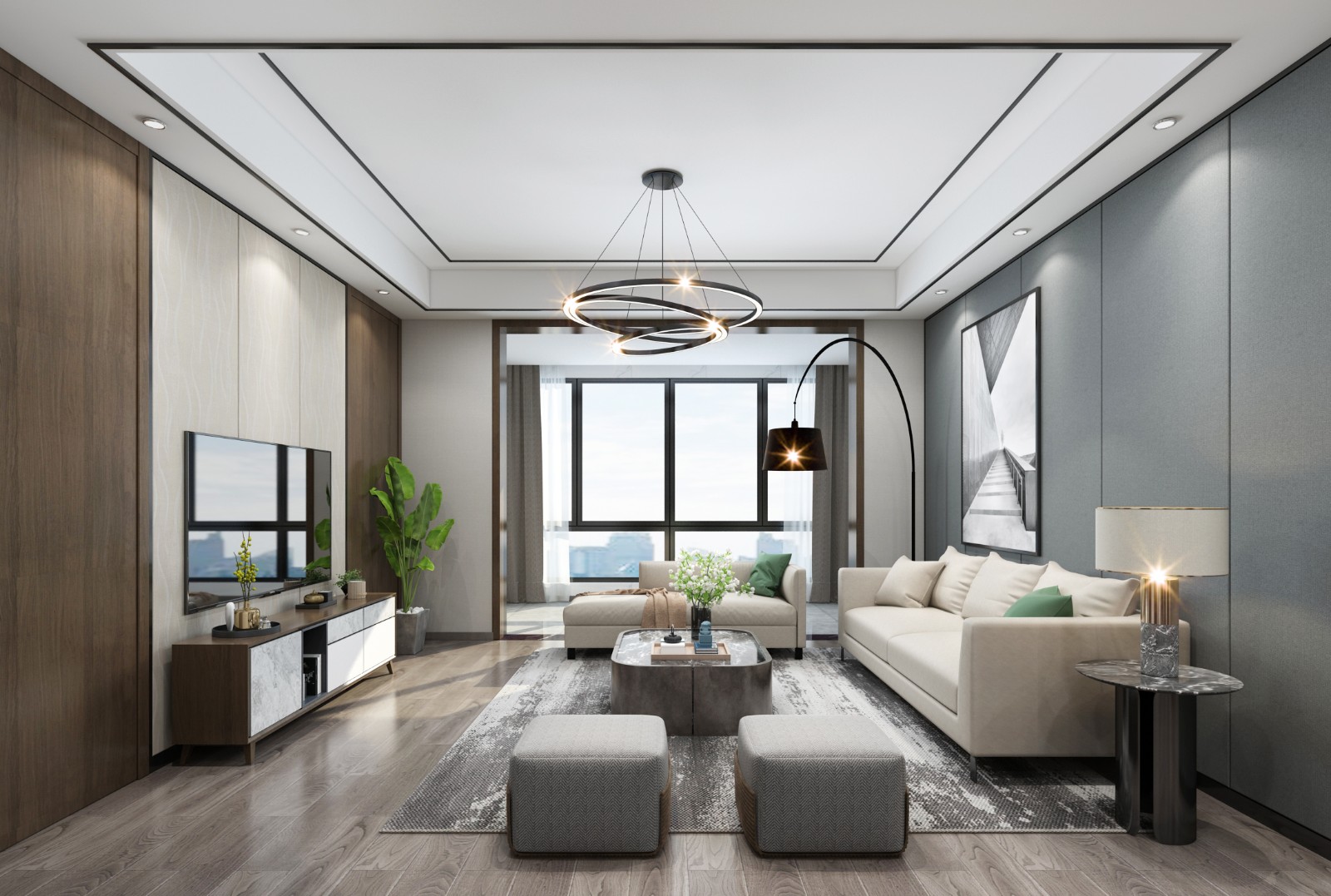 现代轻奢,线条感强。