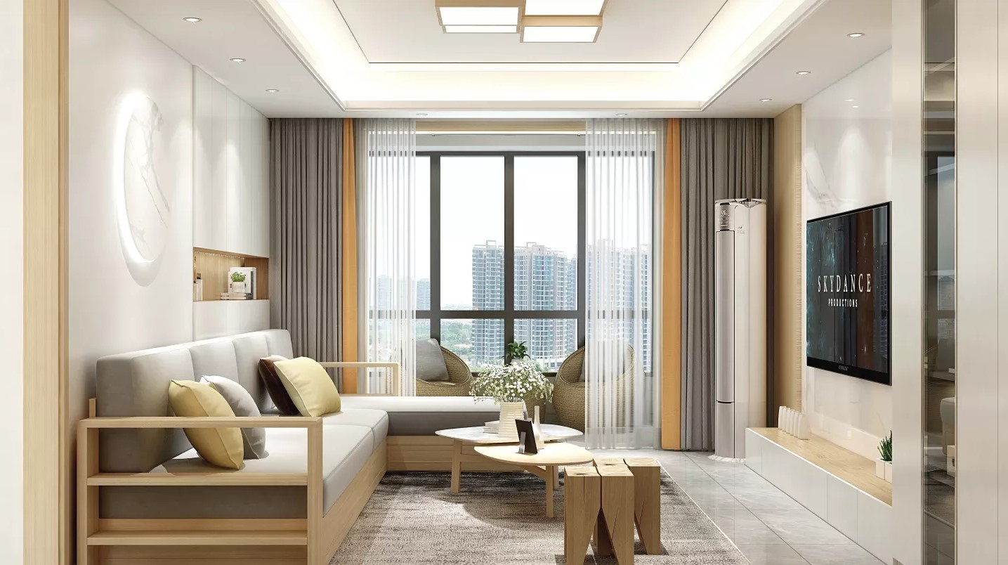 客厅整体造型非常的极简,空间规划也很清晰合理