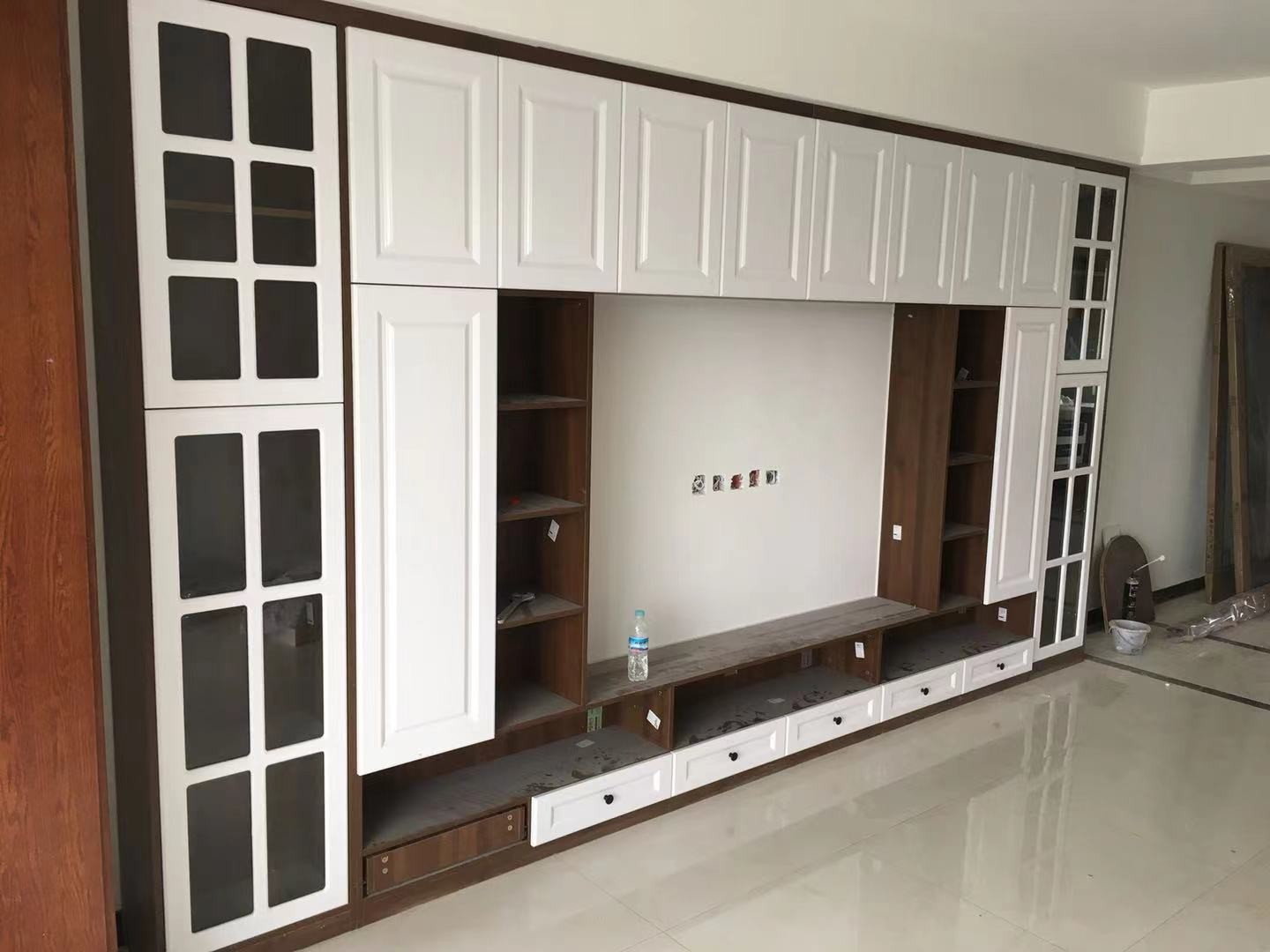 收纳式影视墙,充分利用空间,电视为内嵌壁挂。