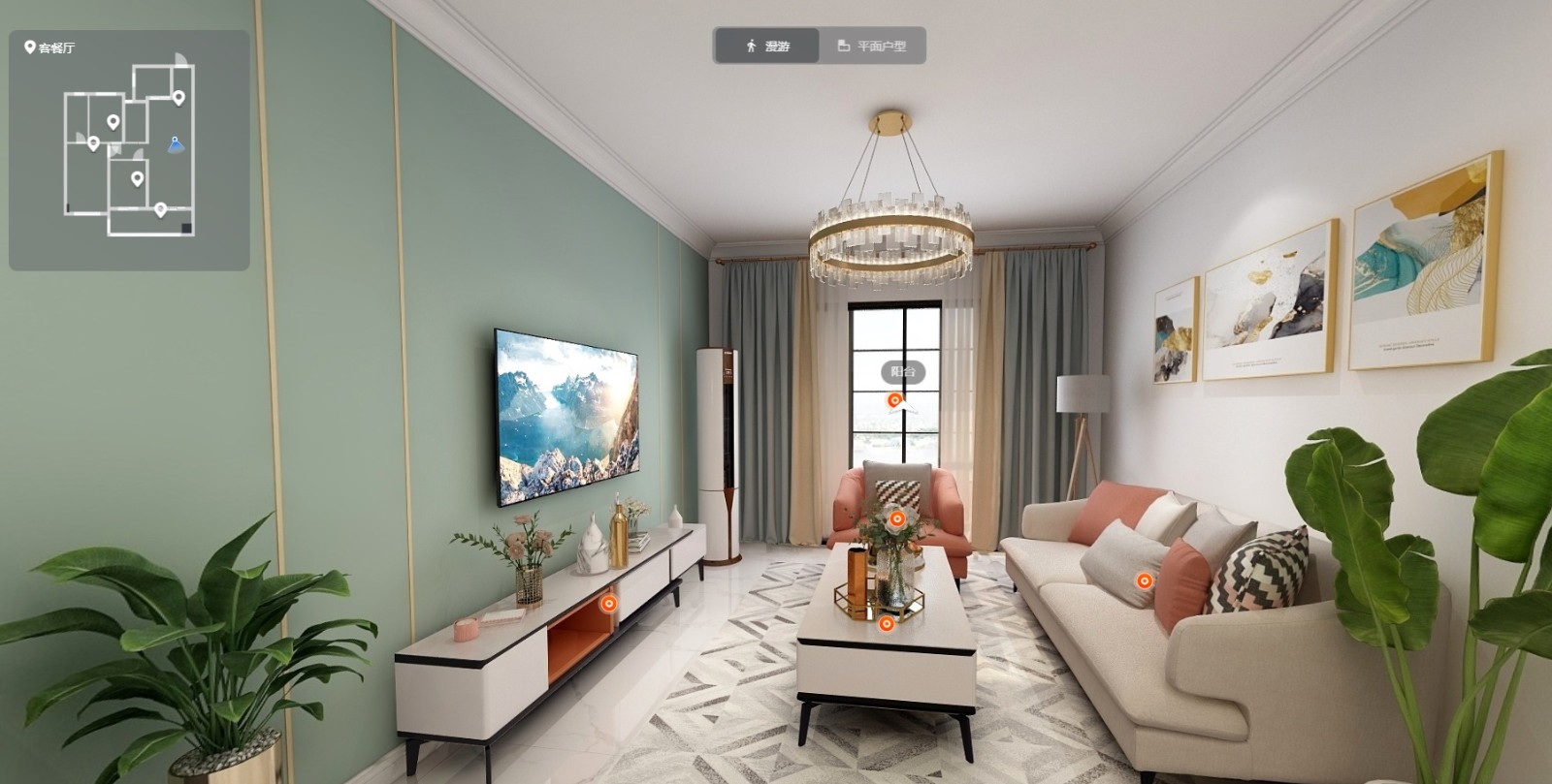 沙发电视柜都添加一些橘色点缀