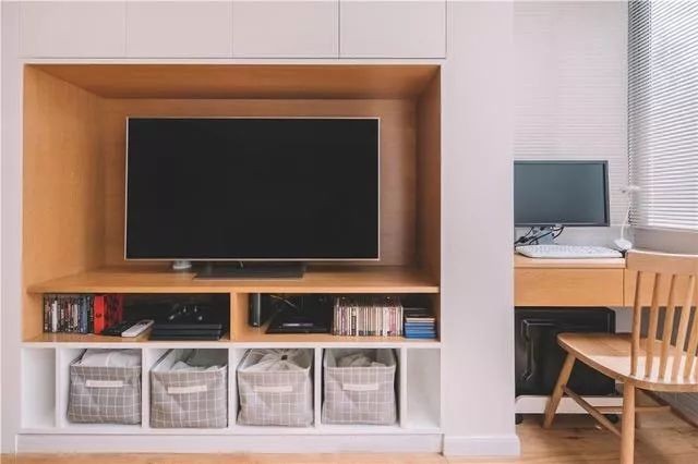 电视墙定制整面电视柜中间设计镂空放电视避免压抑感