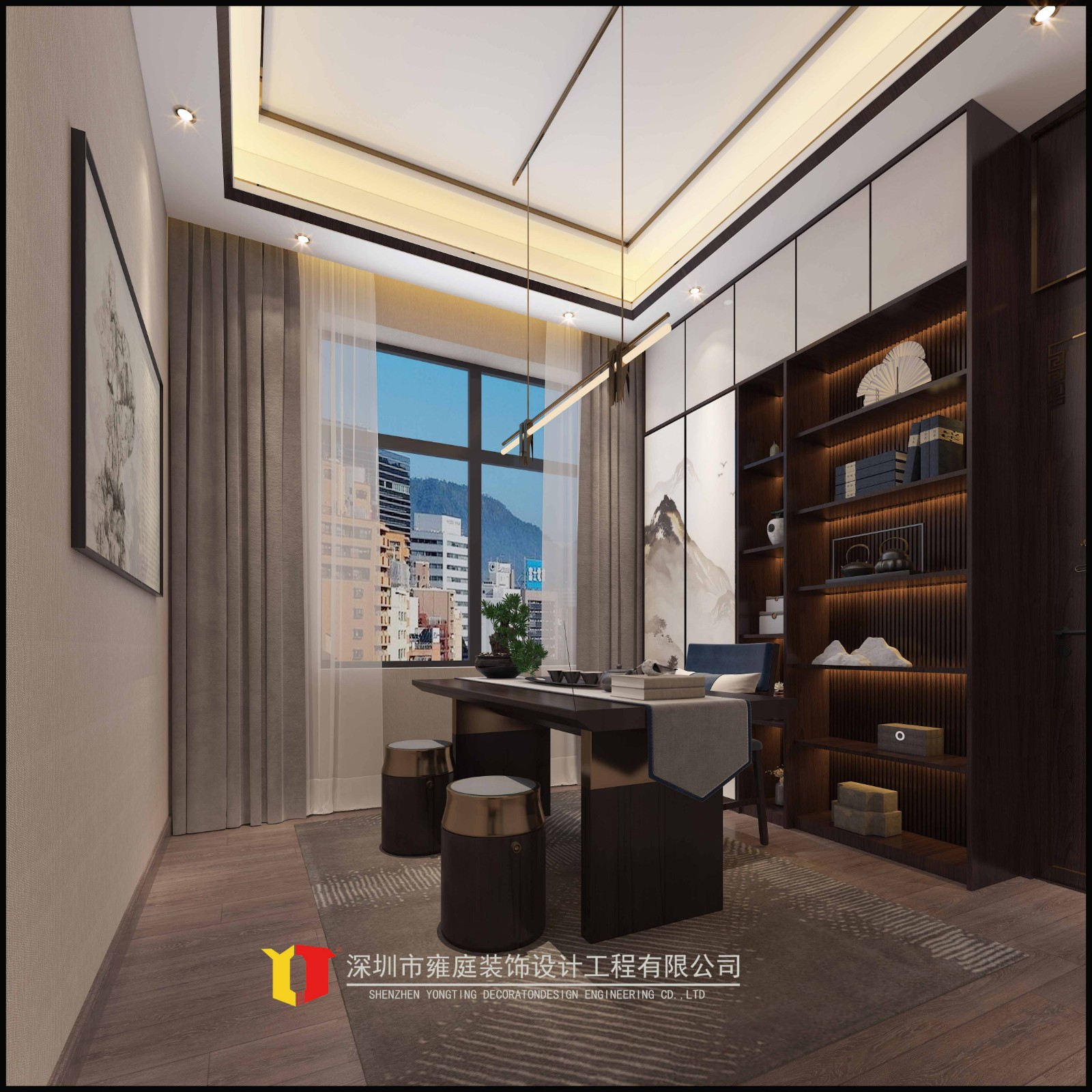 开敞的视线,因高低错落的界面而趋于饱满;起承转合间,中式简约的线条折射出极强的包容性,简括雅致。