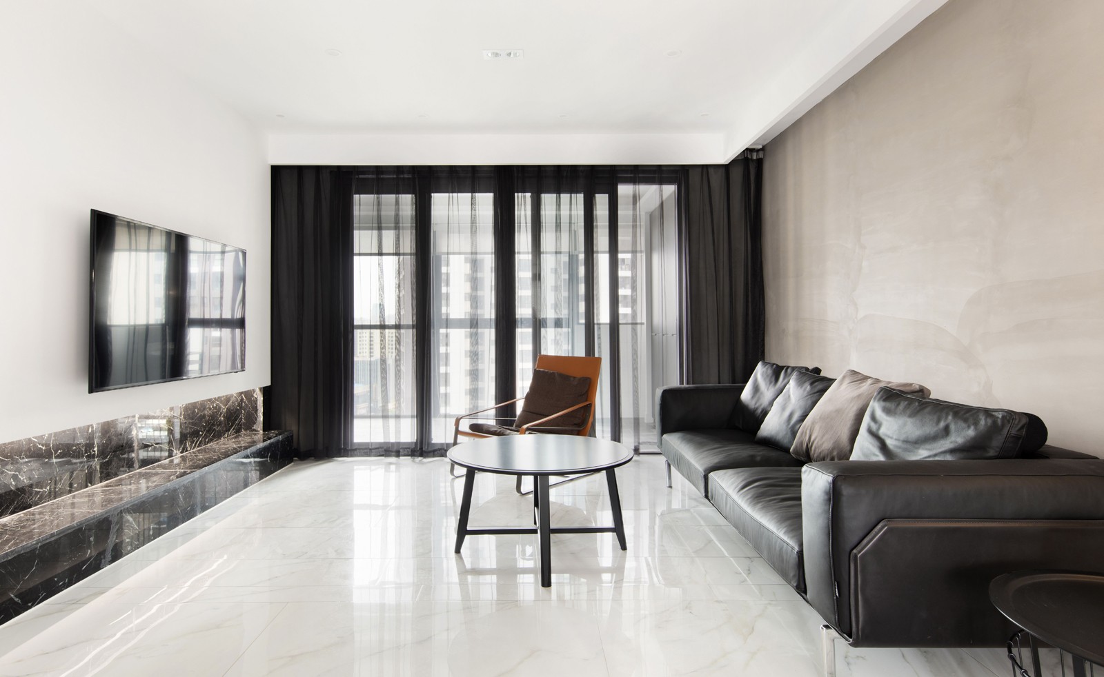已黑白色为主色调,无主灯设计,光线柔和不刺眼