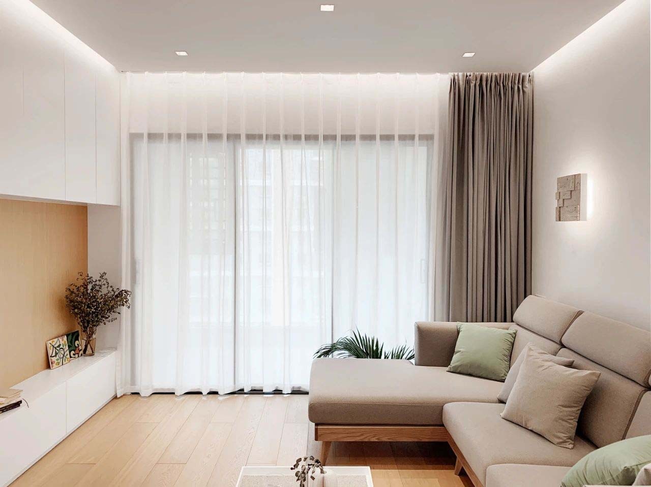 主体空间材质以白墙为基础,穿插木饰面盒子,搭配浅色橡木地板,形成一个干净明亮而温馨的空间氛围。