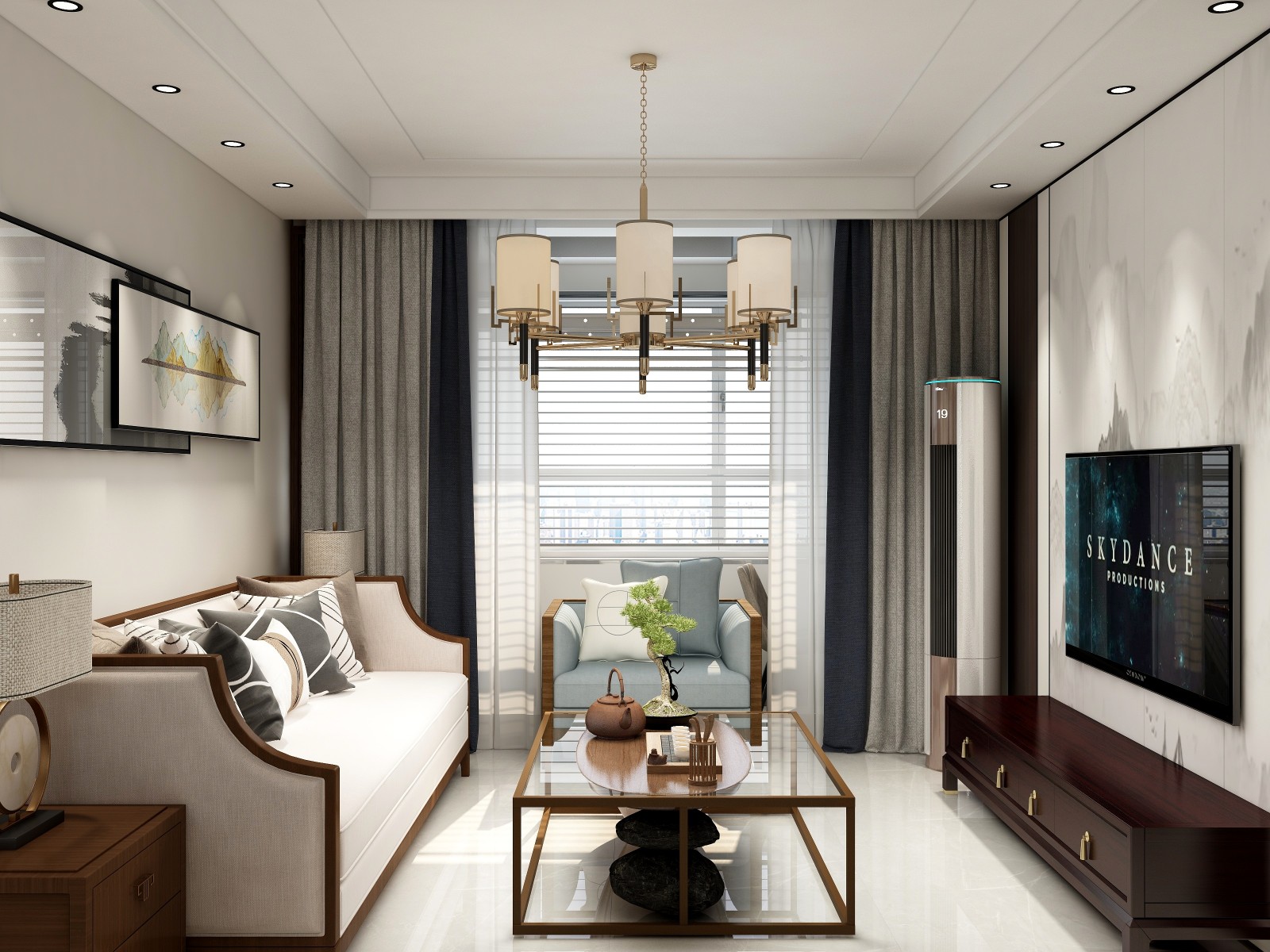 新中式风格在设计上提炼了中式经典元素并加以简化和丰富,空间配色更加轻松自然
