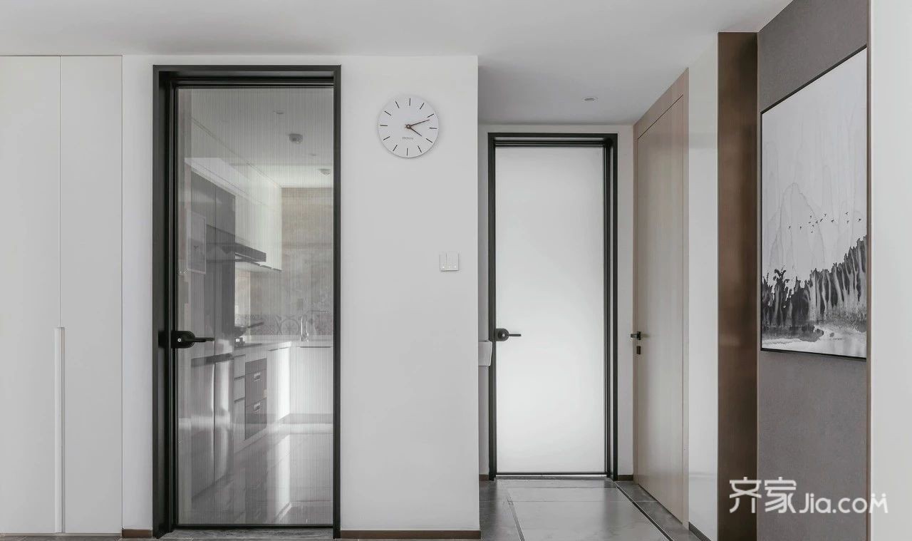 浅灰色墙壁,白色柜体、浅色木质地板,延长光线触角,让室内更加清爽明亮