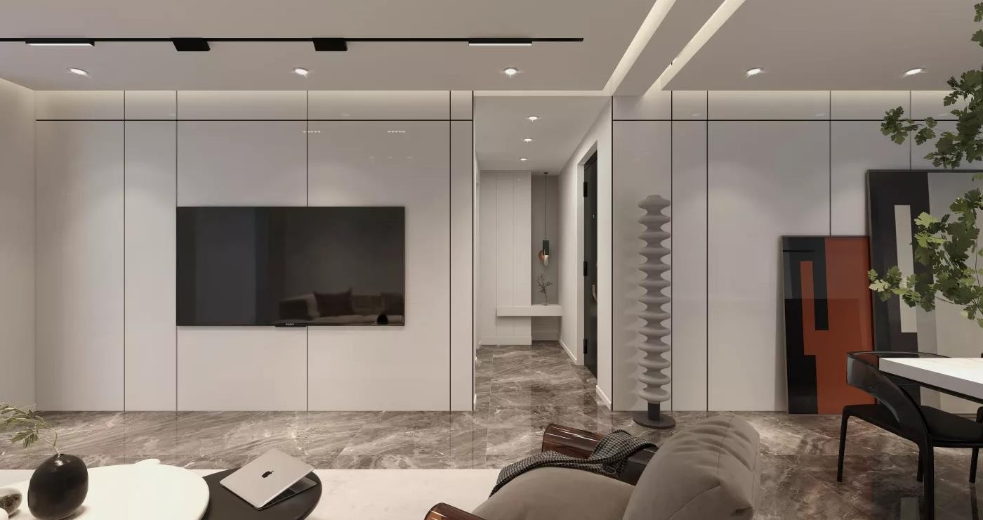 白色的柜门与房屋整体环境做到了风格统一,井井有条的收纳也让储物变得更加便捷,防溅挡板和台面使用米色岩板,简洁干净的配色提升了做饭时的愉悦心情