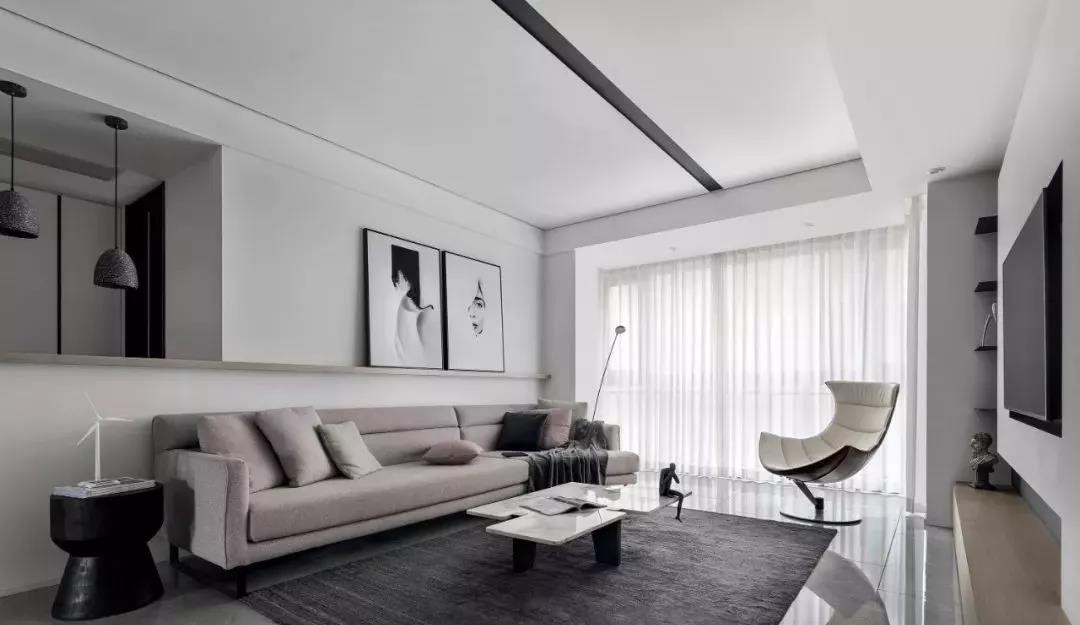 进入客厅目之所及处 没有多余矫饰 以现代主义的高度理性 减少陈设的构成元素