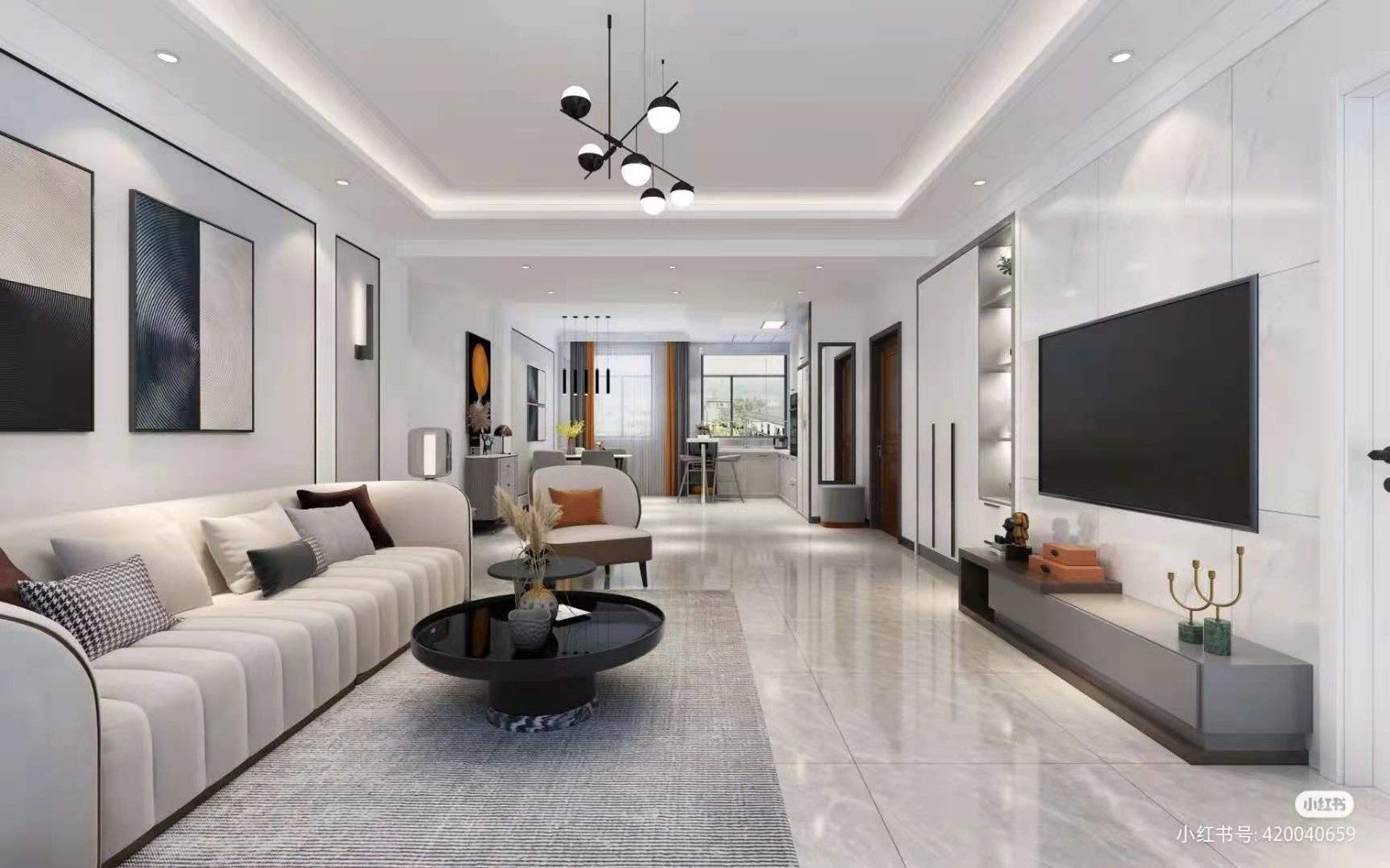 客厅:大开间客厅与卧室精致一体,自在心情无障碍穿行,悠然自得。
