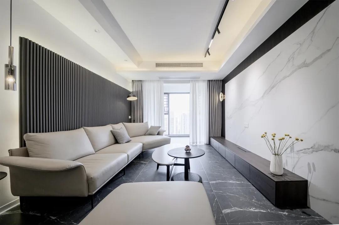 来到客厅,大理石纹瓷砖一路通铺,从玄关一直延伸至客厅,让空间看起来更加大气,扩大餐客联通的空间优势。