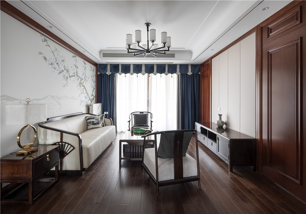 户型是四室两厅两卫的格局,需要留出母亲、女儿的房间。李先生闲暇喜欢书法,因此需要一个书房,基于此原有的格局大致保留。设计风格也定为中式,比较符合两人的气质和年龄,还能兼容家中一些字画装饰。