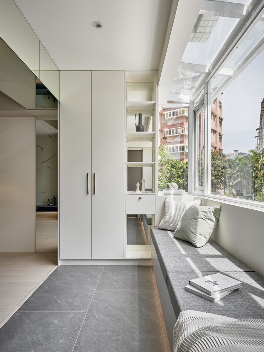 虽身居水泥丛林,眼前尽是绿意森林。镶嵌于边界、试图模糊界线的镜面玻璃,仿如按时序缓慢推移,变幻莫测的万花筒,或穿透,或反射,时而把外头的自然艺术悄悄滞留框景,