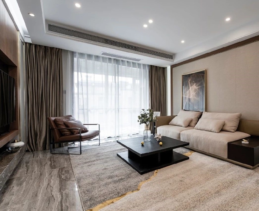 古朴优雅是中式的韵味;简约明快是现代的特性,两种风格相交融,是石材质感与木质纹理的交锋,也是土黄色与云朵白的会晤,更是现世与虚幻的交汇。