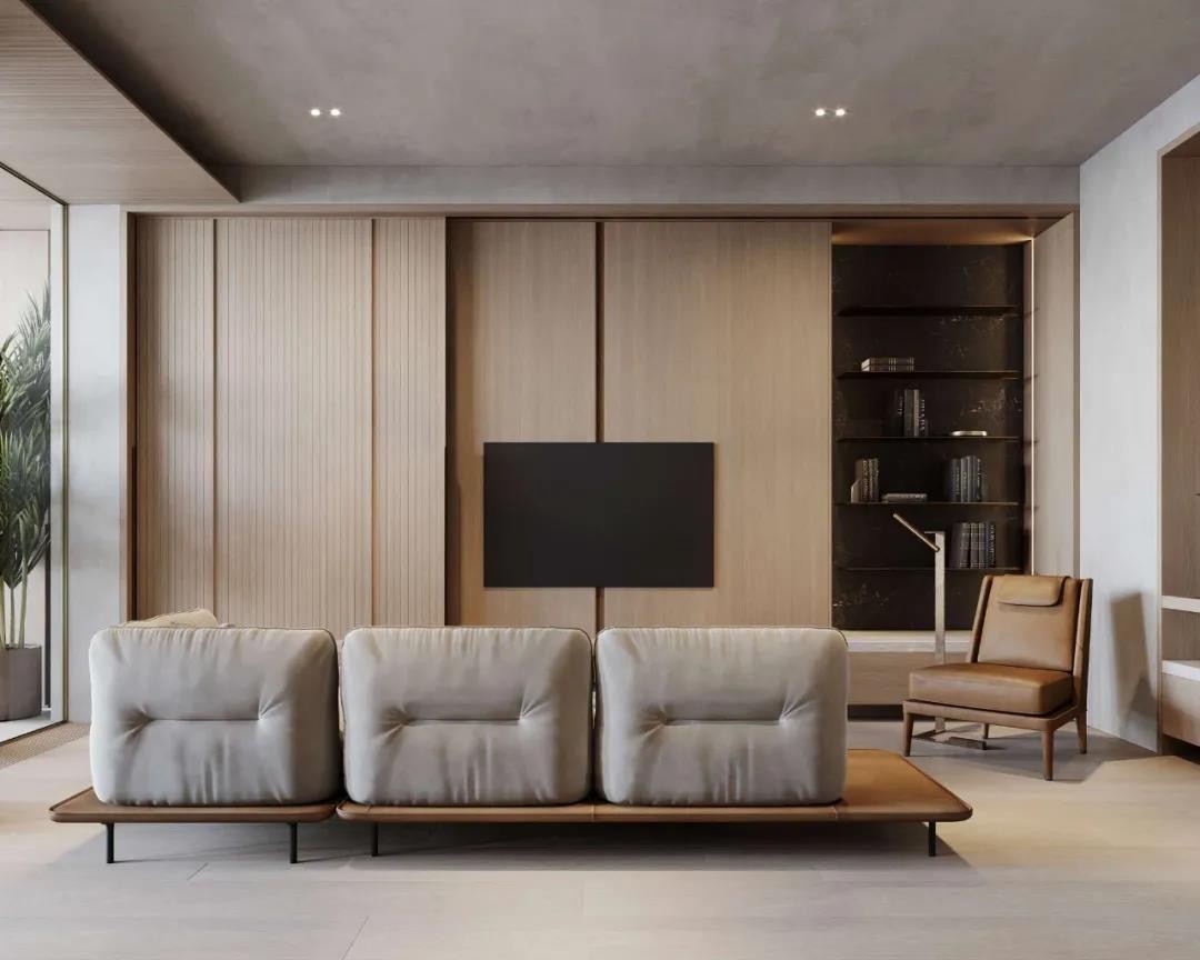 空间的原木色空间为基调,自带***感,水泥灰与木色的搭配,丰富空间的色彩层次,整体的治愈系色彩充满温暖的感染力。客厅的可移动电视背景墙,隐藏电视和书架。
