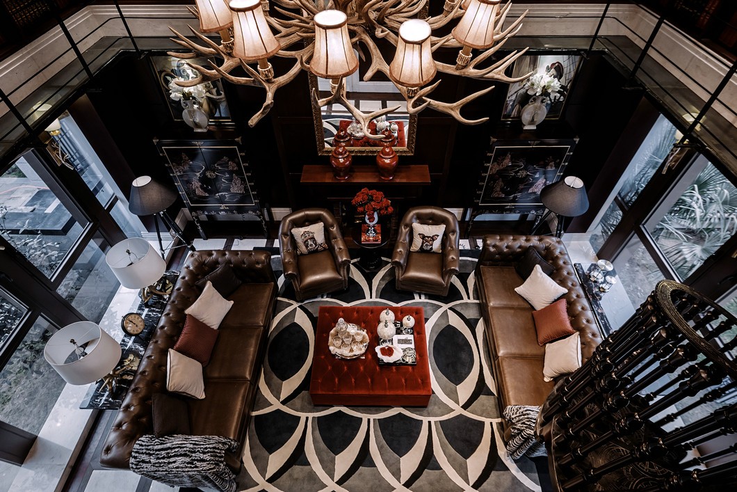 对坐的沙发增加空间的仪式感 鹿角的灯具是真的很有韵味