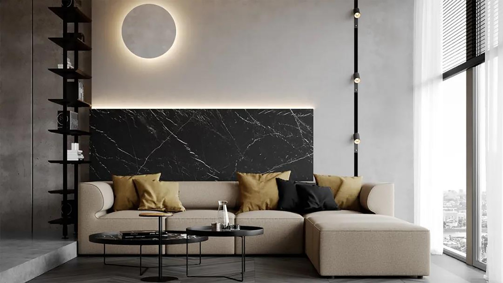 卧室依旧采用客厅相同配色 同时也保持了极简轻奢的视觉风格