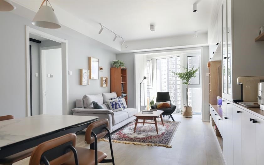 客餐厅区域未做吊顶,无主灯的出现让整个空间更加简洁开阔。