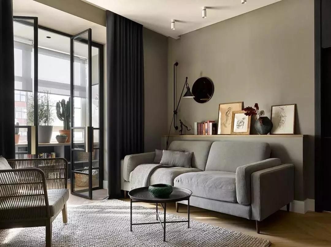 客厅整体略复古,时尚与侘寂之美的结合,很吸引人,尤其是墙体颜色是莫兰迪,特别舒服。