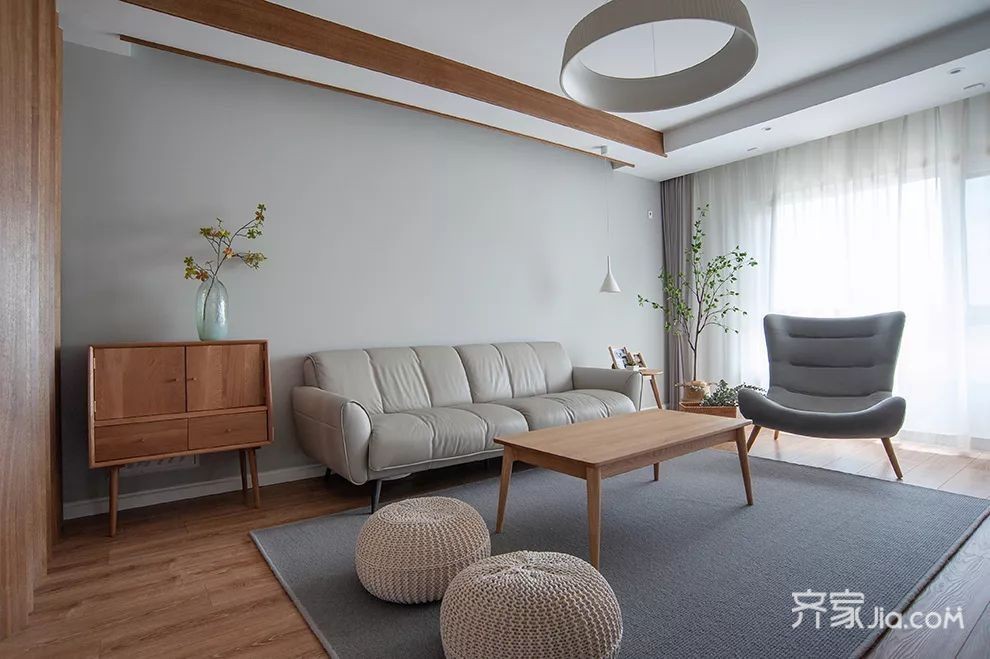浅蓝色点缀原木色搭配放松