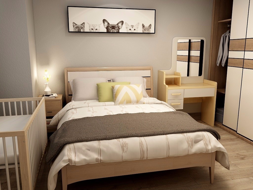 卧室由于空间不失特别大选择采用更加紧密的布置同时功能性更加强大