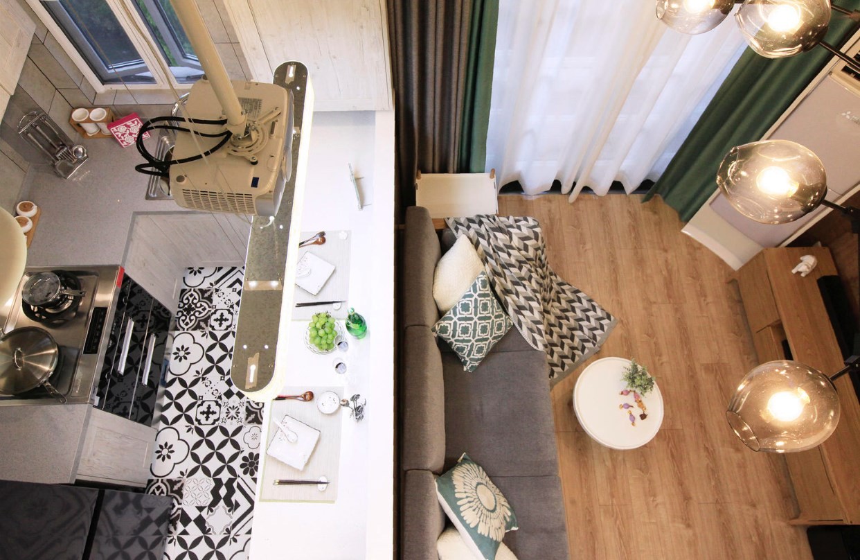 L型开放式的厨房,搭配一排带储物抽屉的吧台就变成了U型空间。