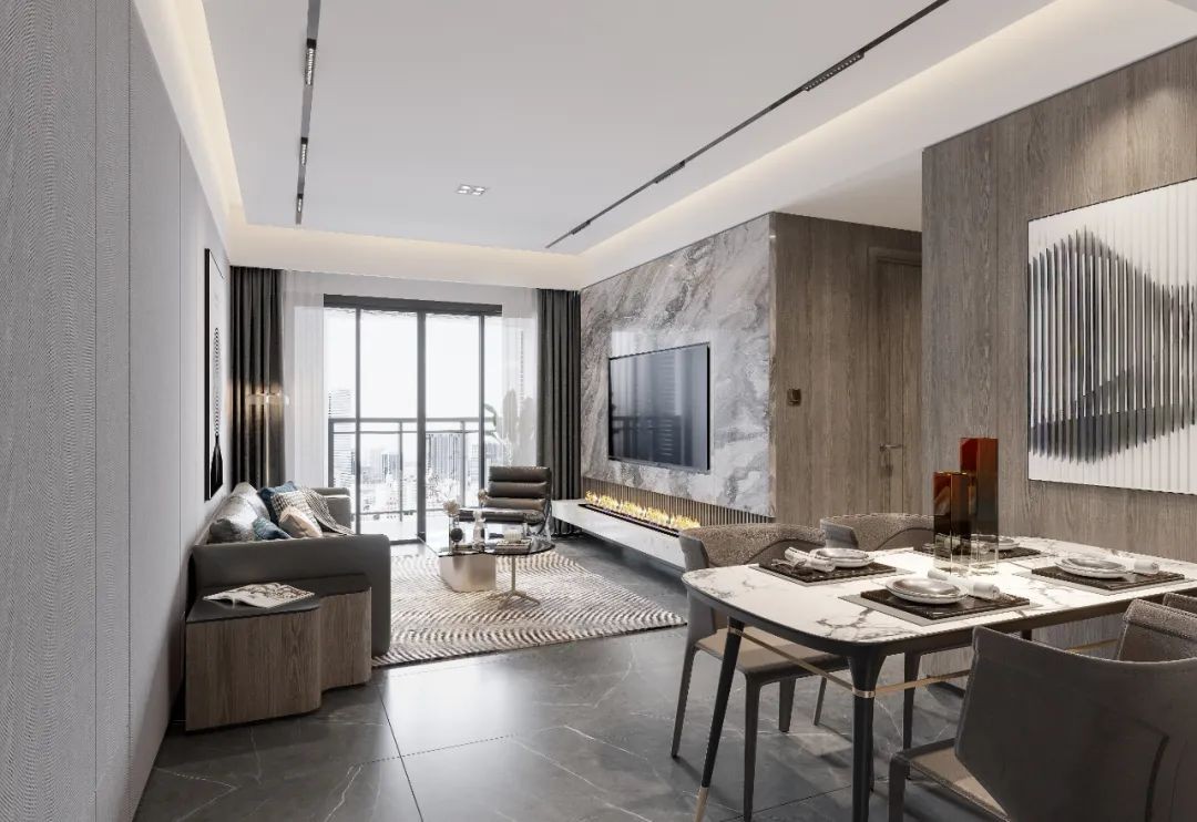 客厅与餐厅之间完全开放的通透关系,***地引入了光源,在稍纵即逝的光影变化中感受材料的细枝末节。
