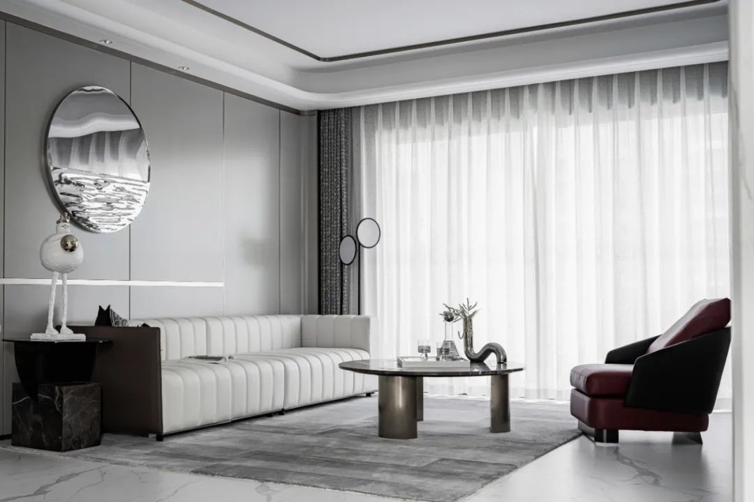 设计的温度在于设计师的情感融入。空间以大面积白色与黑色拉开序幕,调皮的红色瞬间点亮空间。
