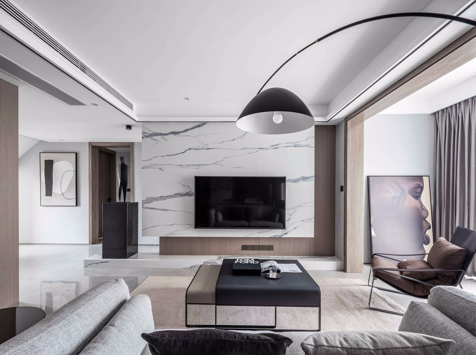 恪尽责任之心,在物欲横流的浪涛里面,固守精神家园,孜孜以求,是我们屋主的初心。传承,碰撞,共鸣,谱写出一个个点,一条条线,描绘千织百面。大厅整个空间以木质元素起承转合,视、听、嗅、触、味之间传递豁然开朗,现代摩登的意蕴与初心不谋而合。