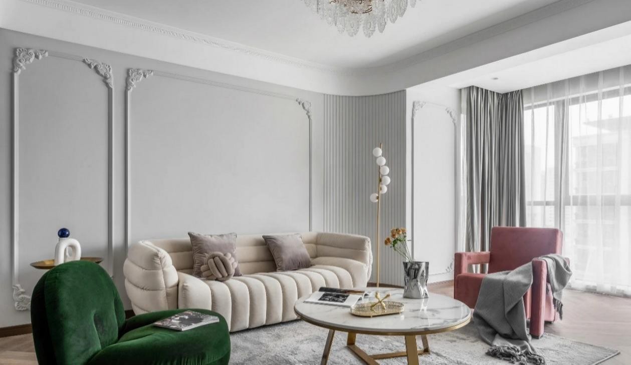 经典的素色打底,简而精的线条与撞色系沙发组合,寥寥数笔便勾勒出家的春风十里