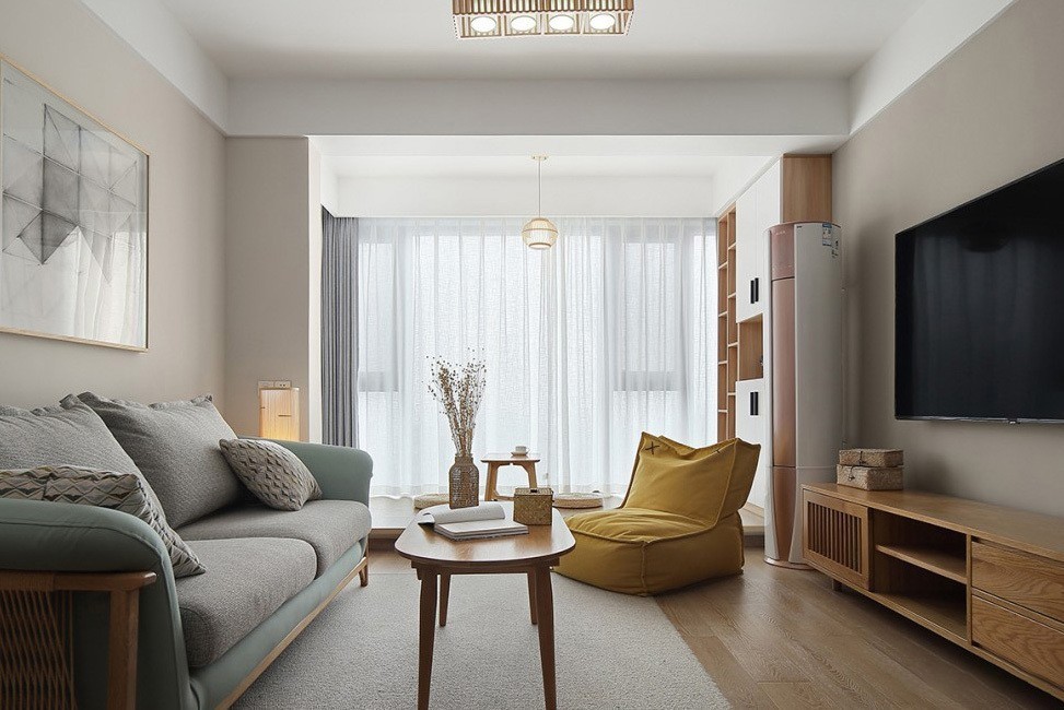 客厅变身超灵活的弹性空间,采取客厅与休闲阳台结合的形式,让阳光洒入,明亮的光线可以减少室内的压迫感。
