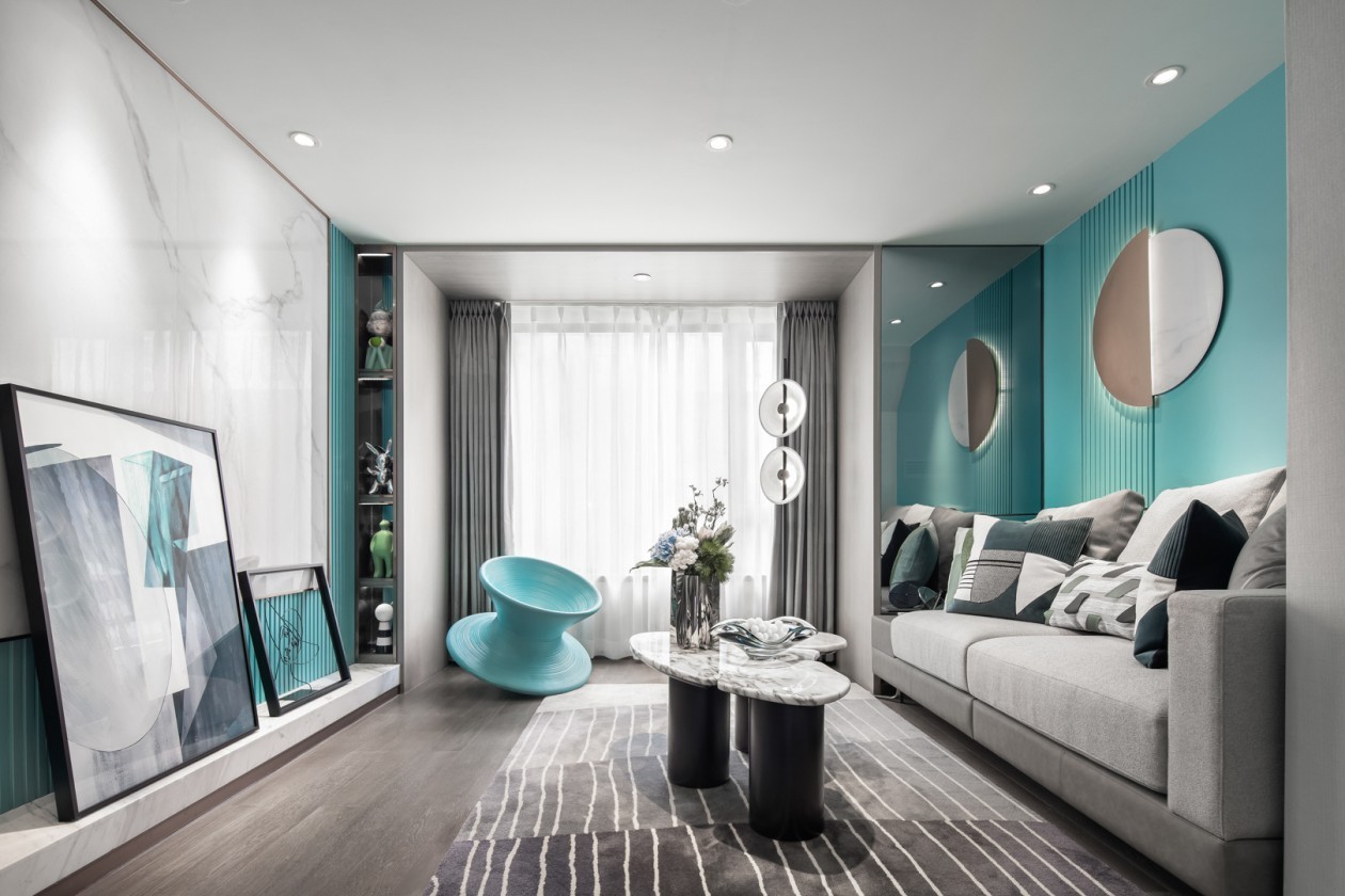 餐厅——内敛和低调的灰镜延伸了视野,联动餐厅和客厅的那抹精致的色彩,在烤漆板背景墙上舒展开去。它如林间泛起的晨雾,灵动又安静,伶俐又优雅,借疏密的韵律变化编织着诗意的梦幻。