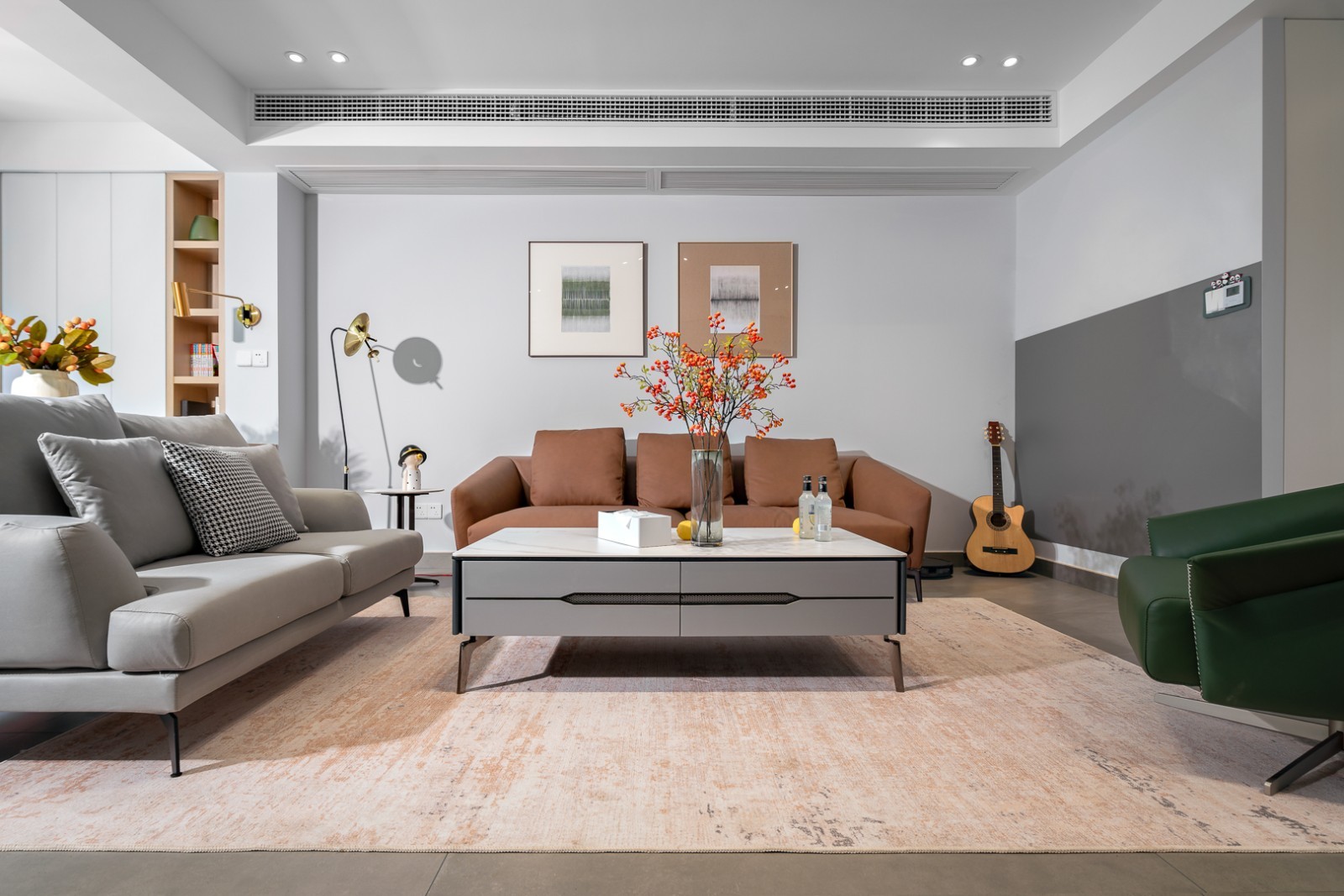 不同层次的灰咖色以多元的形式相互交融组合,软硬装在同一空间里实现了彼此呼应,