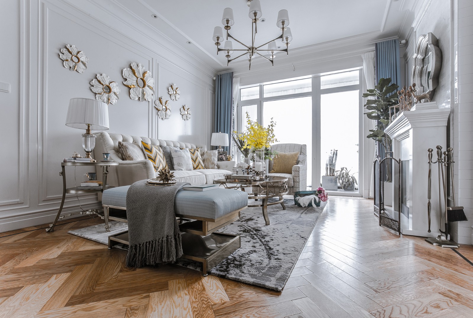 壁炉的线脚和装饰镜与室内其他元素互为呼应,和谐统一