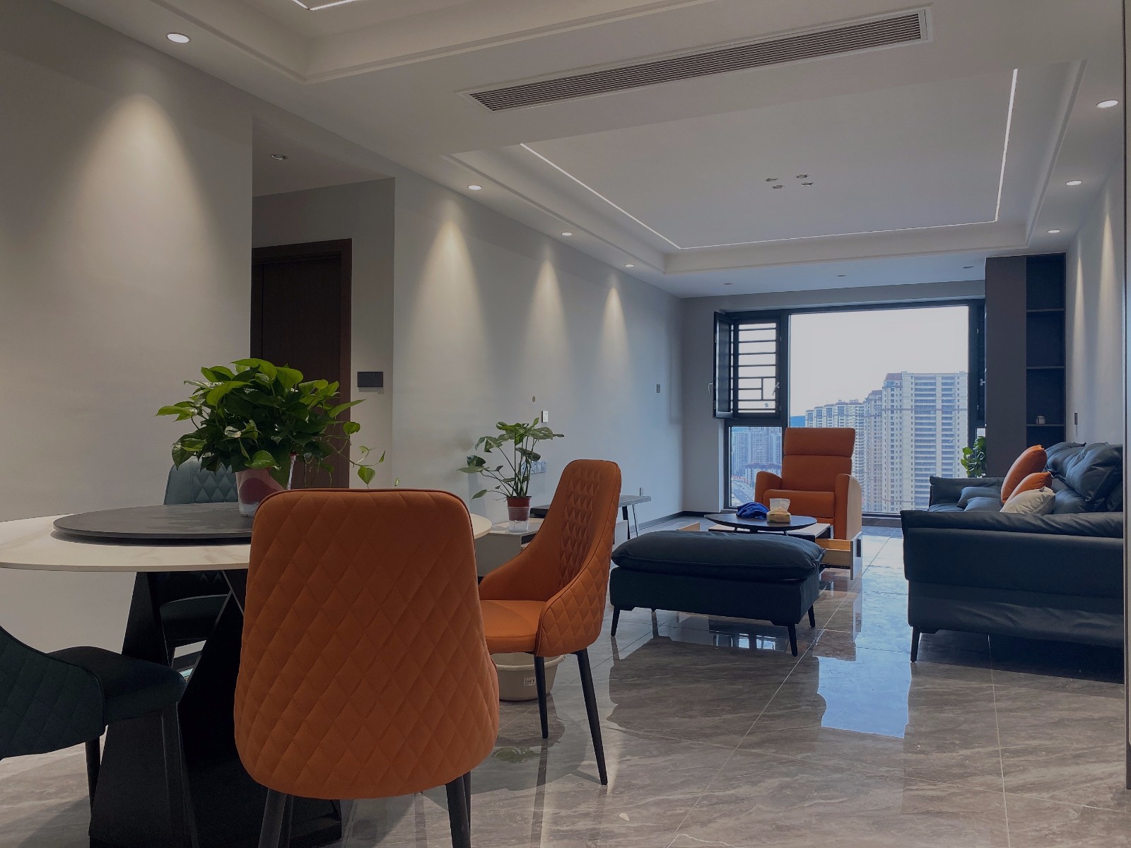 整个客餐厅我们采用了无主灯的设计