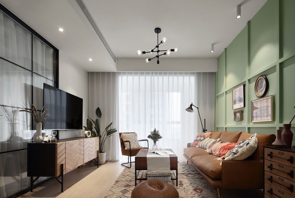 客厅整体是绿色调,搭配复古的沙发,有一种说不出的感觉。