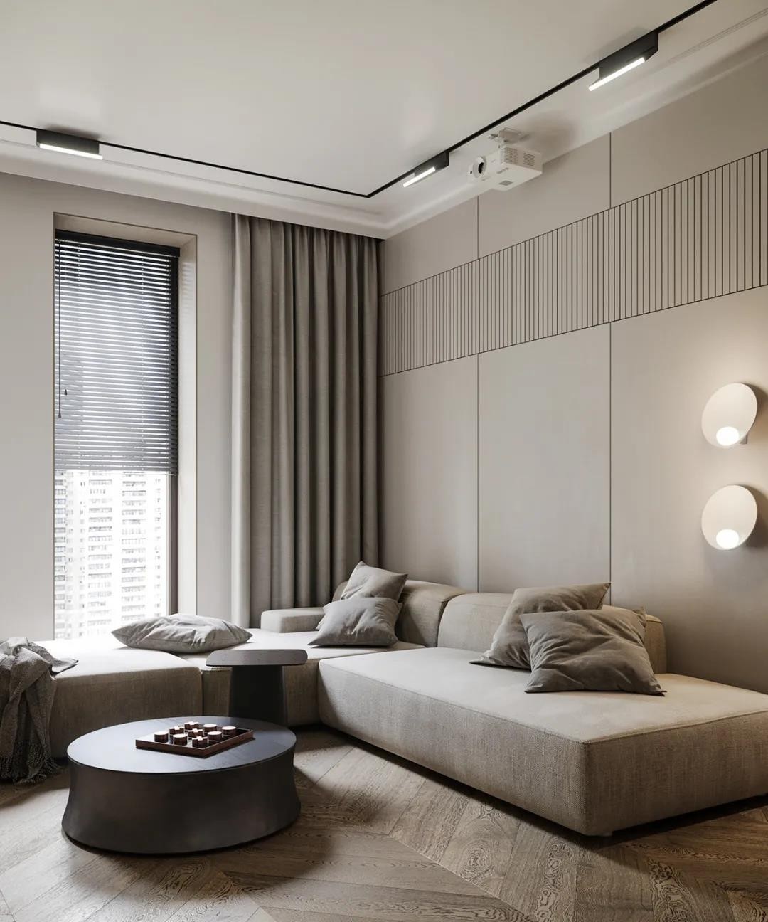 简洁的配色营造自然、放松的氛围。用灰白色搭配原木色勾勒出轮廓,将冷静的色调融入城市的时尚中,回归生活的自然和朴实