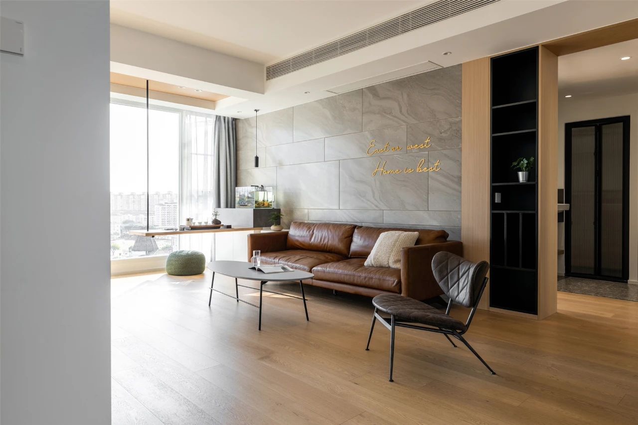 整体无主灯设计,干净清爽,从阳台望去,公共空间通透敞亮。