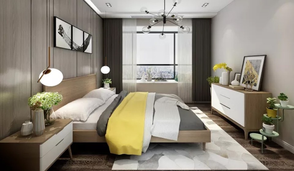 次卧搭配原木色为小孩营造大自然的返璞归真的感觉,给人一种亲临大自然的情景。