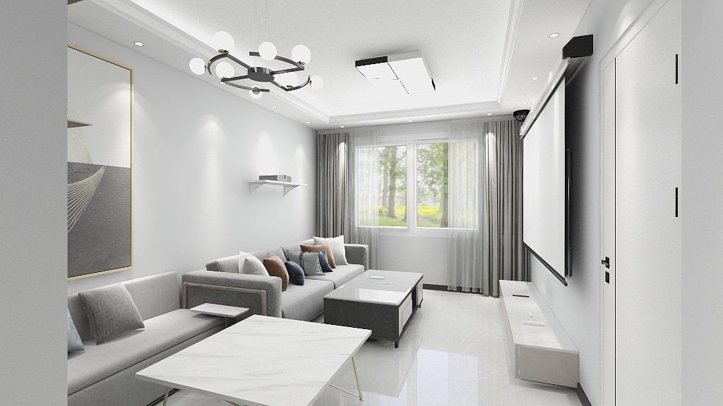 客厅投影仪,全遮阳双层窗帘,观影效果***
