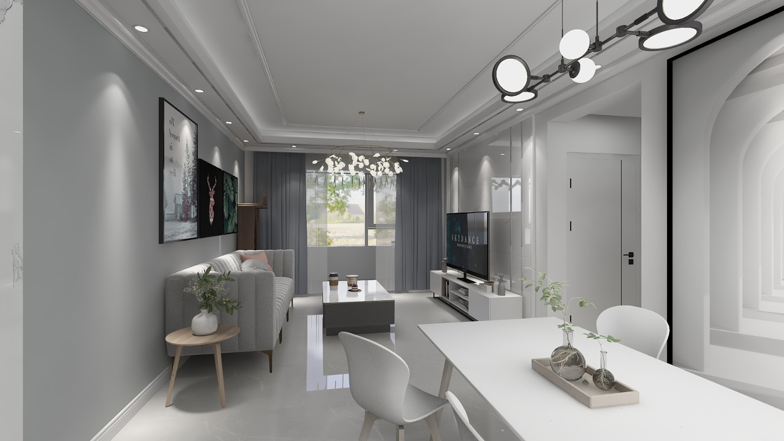 餐厅白色调,搭配厨房透明玻璃门,使家里更温馨